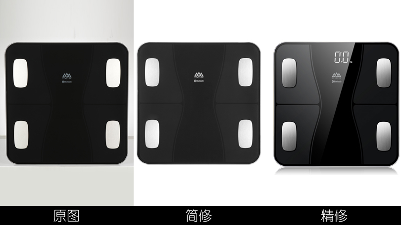 精修:除了对产品或人物进行光线的调整、矫正颜色、增加对比度、亮度外,并对产品或人物进行更加精细的合成、刻画或磨皮等,